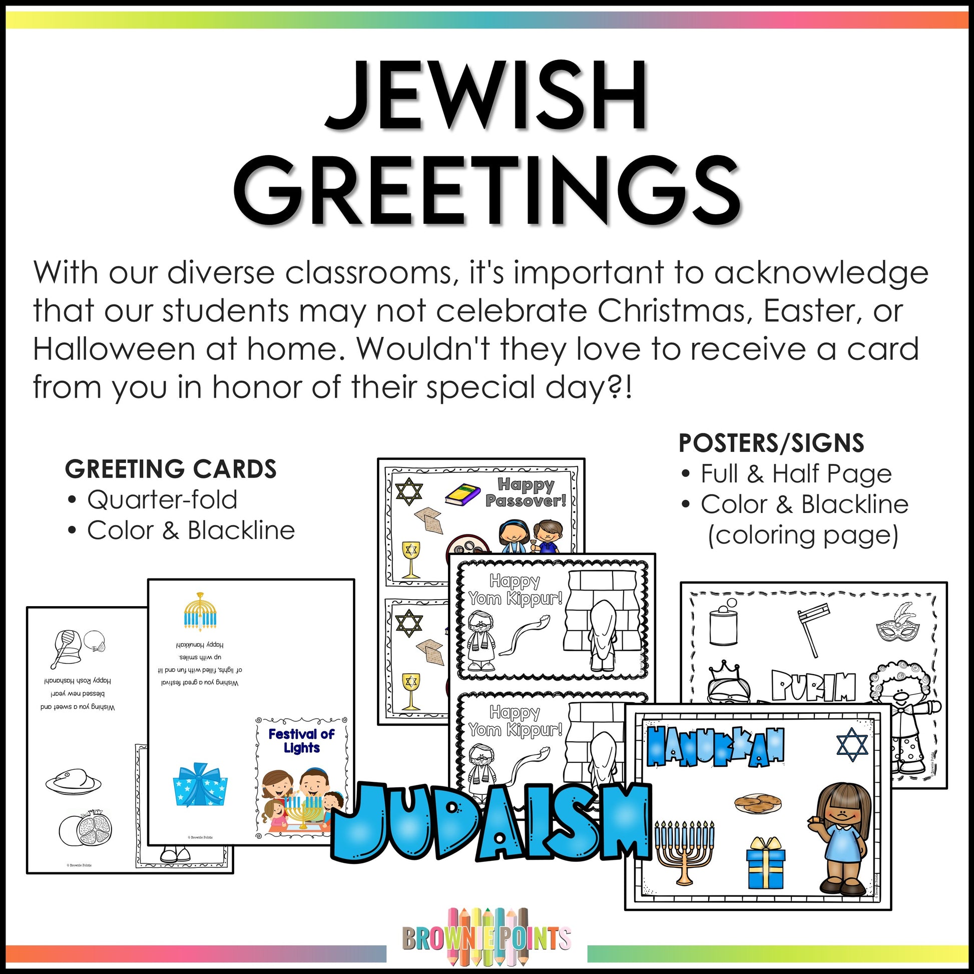 Recognize 5 Jewish celebrations with greeting cards and posters! Wouldn't your students love to receive a card from you in honor of their special day?!